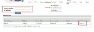 By selecting the Payments link and choosing ‘My Submitted Invoices’ It will display submitted invoices.